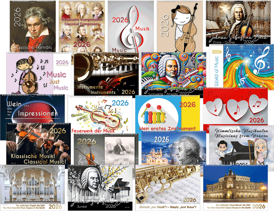 There are 20 Bach calendars in total, available in three sizes. This year and next year. In two calendar styles..