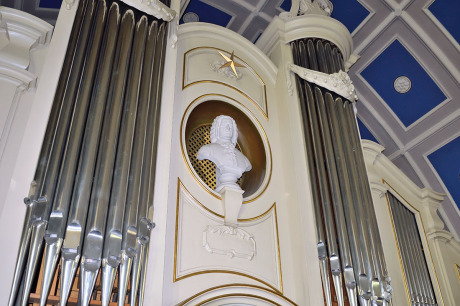 Nowhere was there any reference to this Bach memorial. No picture, no information, “no nothing at all”. Until a dear friend from St. Petersburg, Florida, told me what she had discovered. This gem above (... here are more photos) is located in a canyon of houses. What's more, the weather was particularly bad when she went there. So there were no photos for us. But we knew: There's one more Bach monument. Our best friends also visited Barcelona ... and it was raining cats and dogs. Again, no picture. Finally, we discovered some really great photos on the website of our friend Martin Doering. This website is “the Mecca” for pipe organ fans. The name is: The Pipe Organ Page. He gave us his okay to include it in our collection, and you can find fantastic pictures and much, much more on his pipe organ page here..