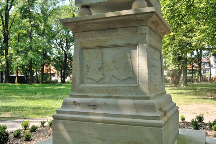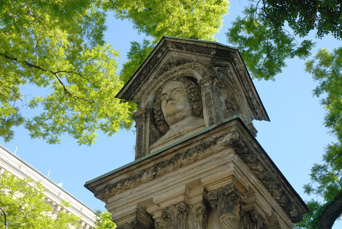 About 20 steps further stands the first of all Bach monuments: It was donated by Felix Mendelssohn Bartholdy. Walk from the imposing New Bach Monument toward the main portal of St. Thomas Church (... it is on the other side of the church tower), but do not turn right – not toward the main entrance – instead, continue straight ahead "into the green". In winter, the first monument, the Old Bach Monument, is impossible to miss. And I don't think you'll miss it in summer either: Don't stray too far from St. Thomas Church to look for it... otherwise you'll be going the wrong way. It's really just a stone's throw from the church..