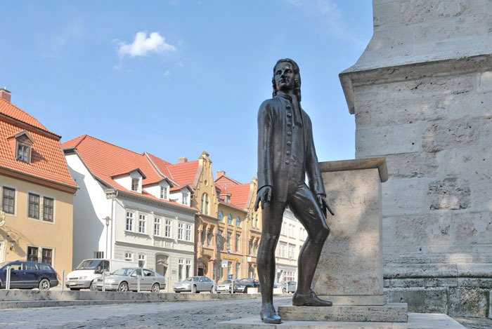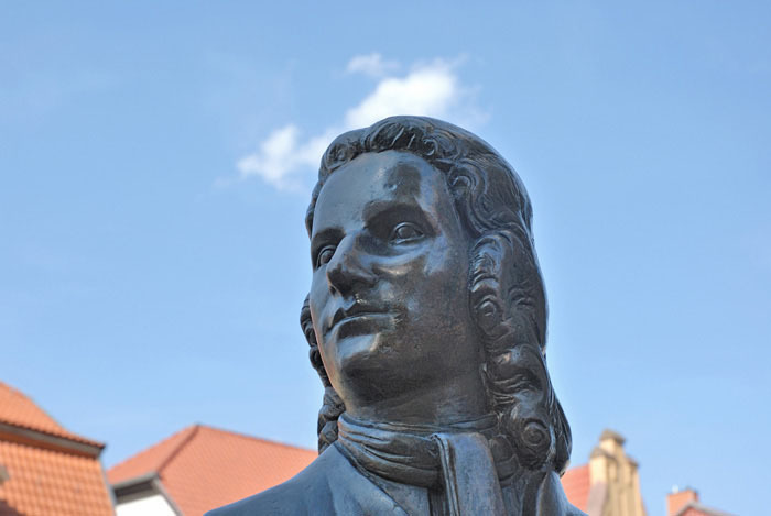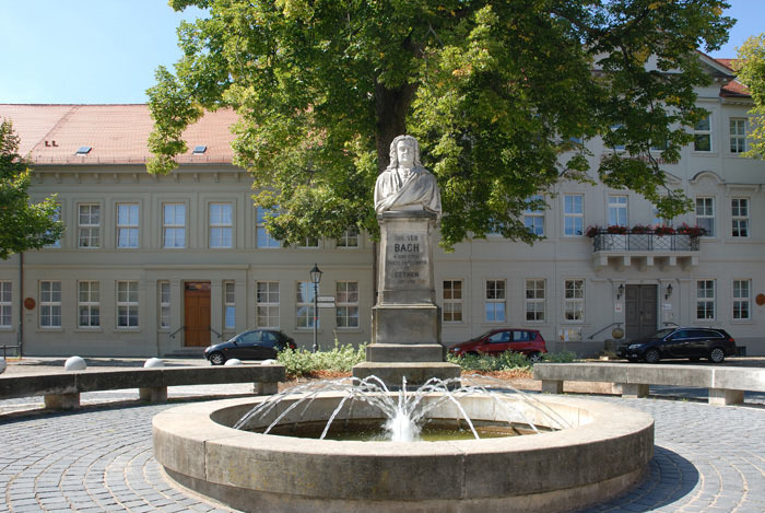 The Bach city of Köthen, where Bach felt most at home and where he would have liked to have spent his entire life, is – measured from the center of Bach Country in Thuringia – “far off the beaten track.” But Köthen compensates for this with six “Bach points”: First, there is the palace, Bach’s place of work with Prince Leopold. Today, it is a Bach memorial. A plaque outside the castle commemorates Bach's work. Inside the castle, a bust awaits his fans. In the baroque quarter of the town is the Bachplatz, which deserves a “Bach point” as an ensemble. One of the historic Bach monuments stands on this square. On the other side of the street, you can imagine the second Bach house, where the Bach family lived. Where the first is believed to have stood, there is no house today. Because of its relative closeness to Leipzig, Köthen does not receive any penalty points in our little competition, even though it is a long drive from the "Land of the Bachs" to Köthen..